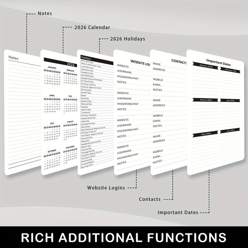 Full Year Coverage (Jan–Dec 2026): Weekly & monthly layouts for effective planning.
