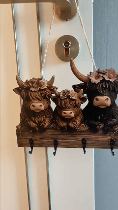 Adorable Highland Cow Wall Decor with Hooks – Farmhouse Charm Meets Practicality! 🐮🌻