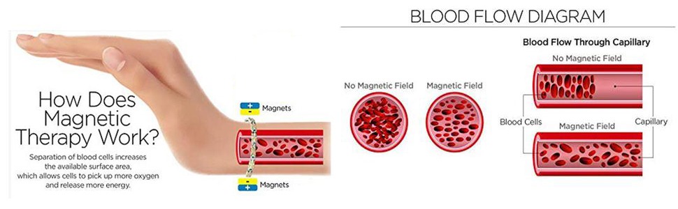 Magnetic therapy works by using the power of magnets to improve blood flow. increase oxygen absorption. and reduce inflammation. When you wear the bracelet. the magnets help separate blood cells. allowing them to absorb more oxygen and release more energy. resulting in reduced pain and increased vitality.