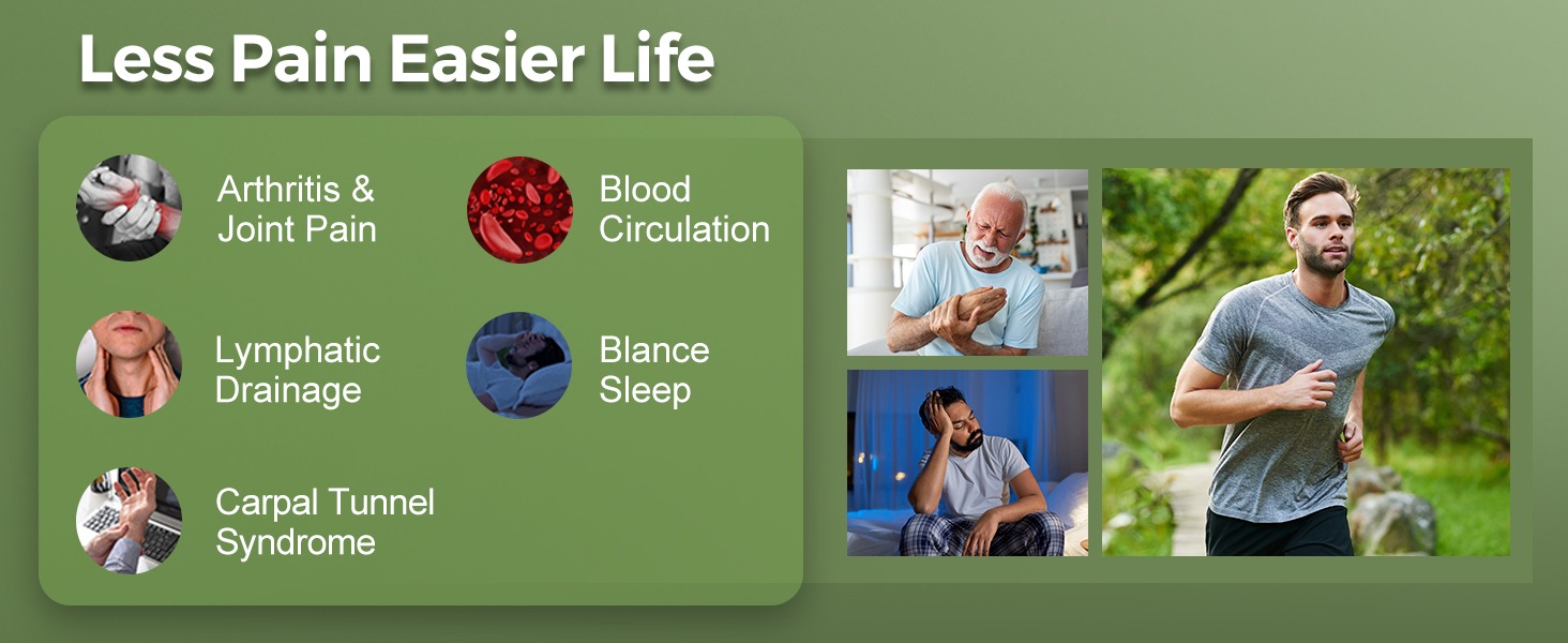 Arthritis & Joint Pain: Relieves stiffness and discomfort in joints. wrists. and hands.