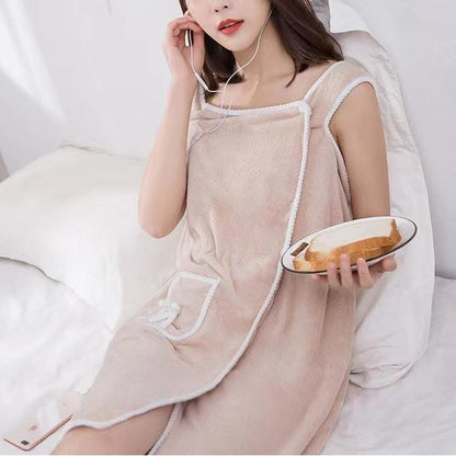 Indulge in the ultimate comfort with our women's bath towel wrap. crafted from super-soft and skin-friendly coral fleece. The material is not only excellent at water absorption and quick-drying but also ensures a breathable. warm. and cozy experience.